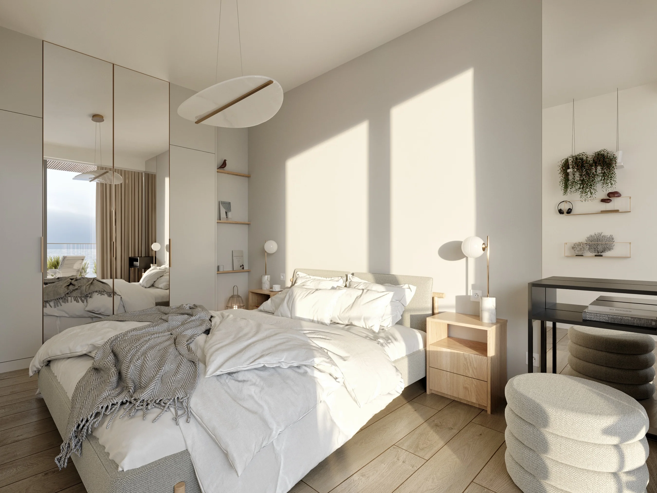 Jak urządzić apartament nad morzem, aby w dowolnym momencie cieszyć oczy kojącym widokiem na Bałtyk? Apartamenty w kompleksie CISHA to synonim nietuzinkowej przestrzeni, gdzie duże okna, przestronne tarasy i szklane balustrady zapraszają nadmorski krajobraz do wnętrz. W urządzeniu takiego apartamentu priorytetem staje się podkreślenie tego, co za oknem. Naturalne kolory, minimalistyczne dodatki oraz meble skupione wokół widoku, a nie go zasłaniające, zdają się być doskonałym przepisem na aranżację tego typu wnętrza. Nasze apartamenty z widokiem na morze oferują nie tylko przepiękną nadmorską panoramę, ale i możliwość jej pełnego doświadczania dzięki funkcjonalnie zaprojektowanym przestrzeniom. Zarówno kształt jak i położenie budynku zostały starannie przemyślane z myślą o dostarczeniu możliwie największej ilości bezpośredniego widoku na morze - zarówno z salonu jak i sypialni apartamentu.
